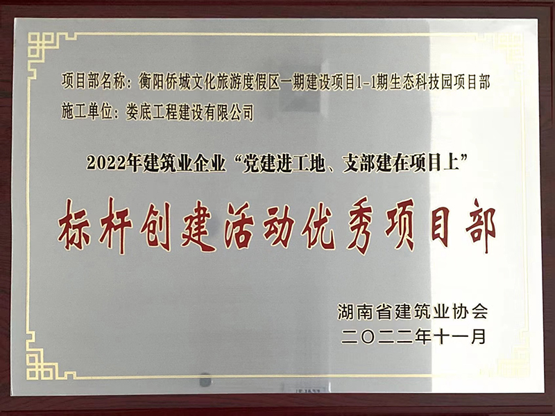 2022年衡陽(yáng)僑城文化旅游度假區(qū)一期生態(tài)科技園項(xiàng)目標(biāo)桿創(chuàng)建活動(dòng)優(yōu)秀項(xiàng)目部獎(jiǎng)牌