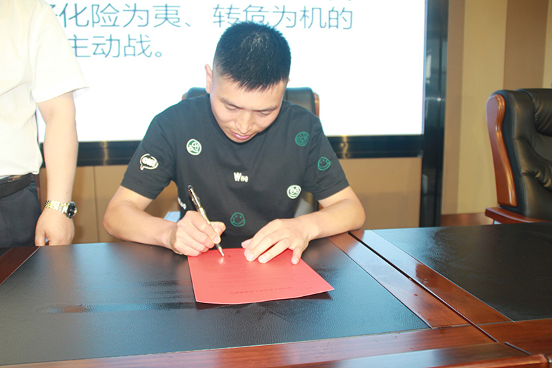 ▲各項目負責人簽署《項目部主要負責人安全承諾書》并呈交給總經理