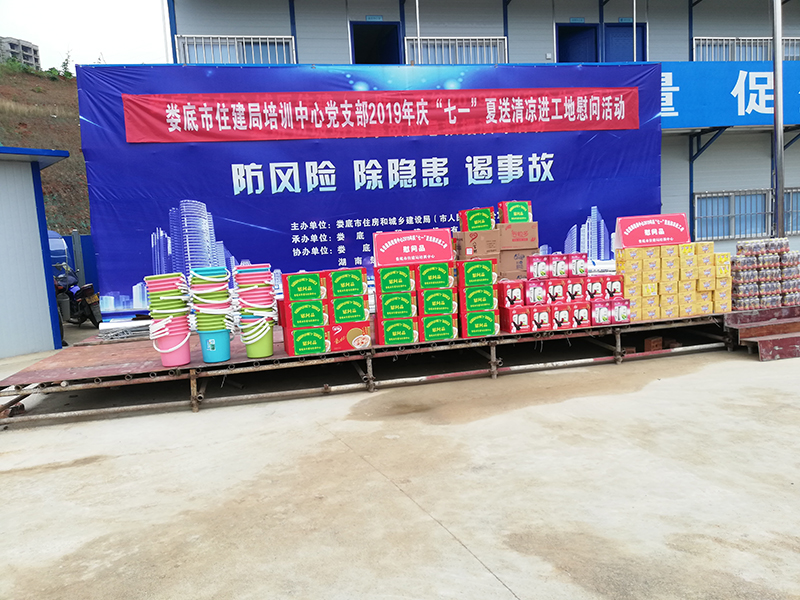 七月一日上午,市住建局(人防辦)黨委副書記李群歡書記率領市住建局培訓中心黨支部全體黨員,親臨我司施工現場,炎夏送清涼慰問一線的農民工,深深地感受黨恩和領導的關心。