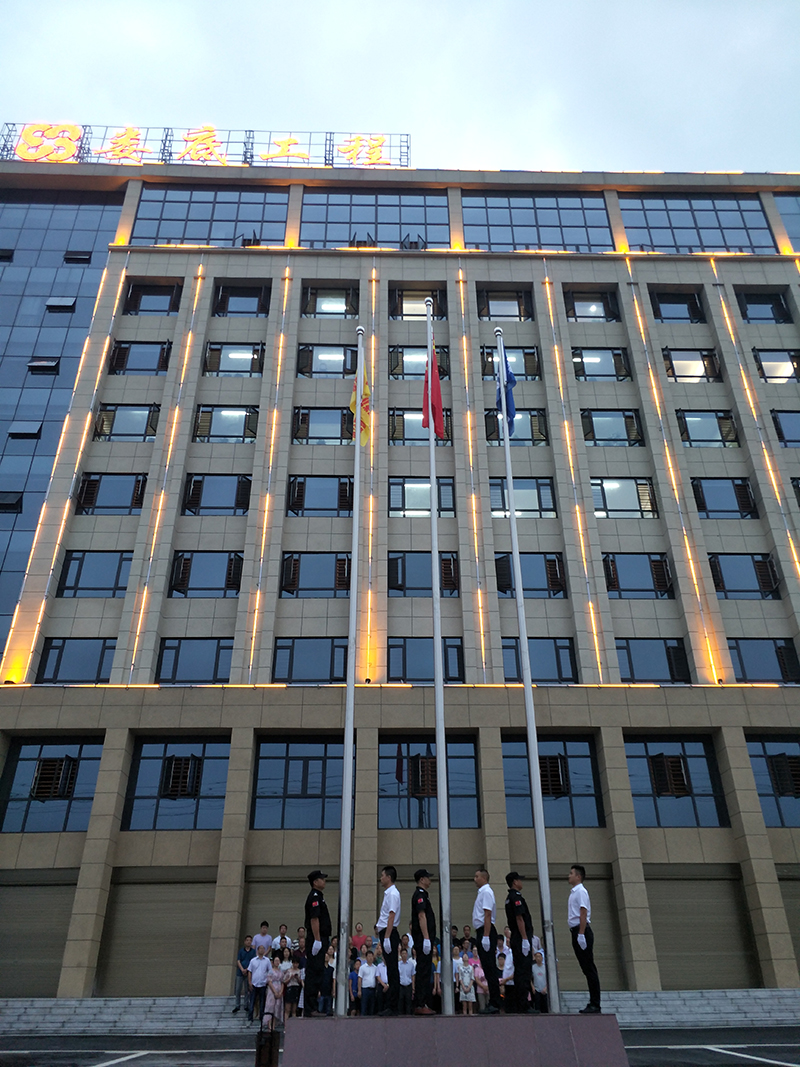 2019年7月19日5時58分,公司在新辦公樓前舉行了喬遷揭牌暨首次升旗儀式。湖南湘中礦業集團副總裁、婁底工程建設有限公司董事長張愛慧先生致辭,湖南湘中礦業集團副總裁劉璐先生、湘中礦業集團法人代表聶武湘先生、婁底工程建設有限公司胡勁總經理共同為新辦公樓落成揭牌,公司領導班子及部室全體人員參加儀式。這標志著湖南湘中礦業集團、婁底工程建設有限公司的發展進入一個全新的階段。