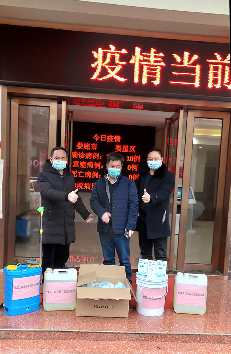 守望相助,共戰疫情。公司領導得知婁星區樂坪街道辦事處火車站居委會防疫物資短缺,決定從公司有限的防疫物資中擠出一批支援社區疫情防控工作。2月21日,公司總經理胡勁代表婁底工程建設有限公司將1500個一次性口罩、三支紅外線體溫檢測儀及消毒水、消毒粉等捐贈給火車站社區,以實際行動支援社區的防控工作。