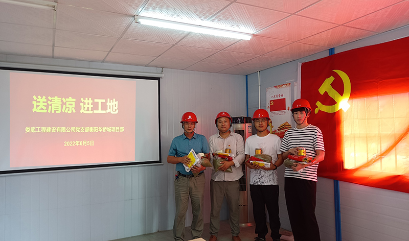 炎炎夏日,揮汗如雨。為保障員工的身體健康,確保全體員工全身心投入到安全生產(chǎn)工作中,6月5日,公司黨支部到衡陽華僑城項目部開展了“送清涼 進工地”慰問活動。
