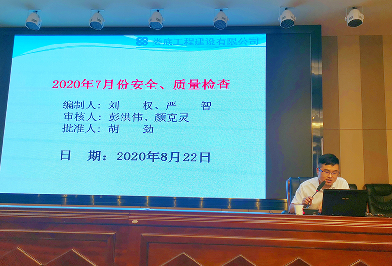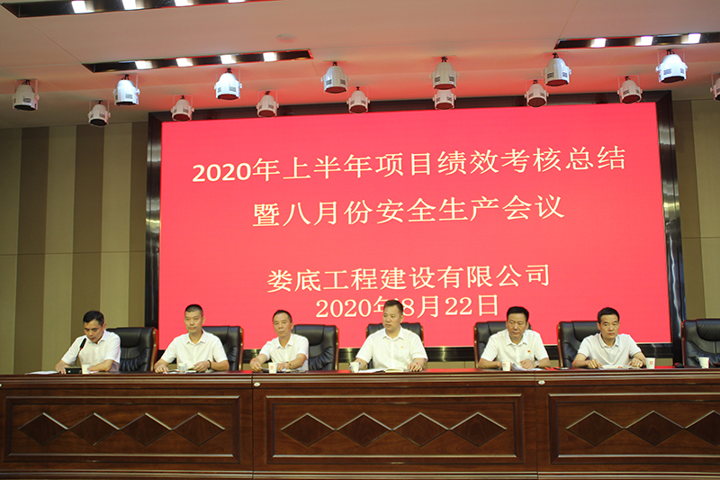 2020年8月22日上午9時,公司在9樓多功能會議廳召開2020年上半項目績效考核總結暨八月份安全生產會議,公司總經理胡勁、總經理助理姜建輝、總工程師李偉、副總經理彭洪偉、顏克靈,財務總監戴文彬出席此次會議,公司各部室及項目管理人員100余人參加了此次會議。