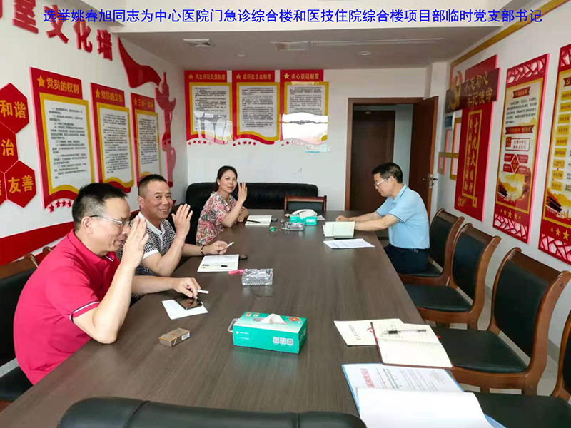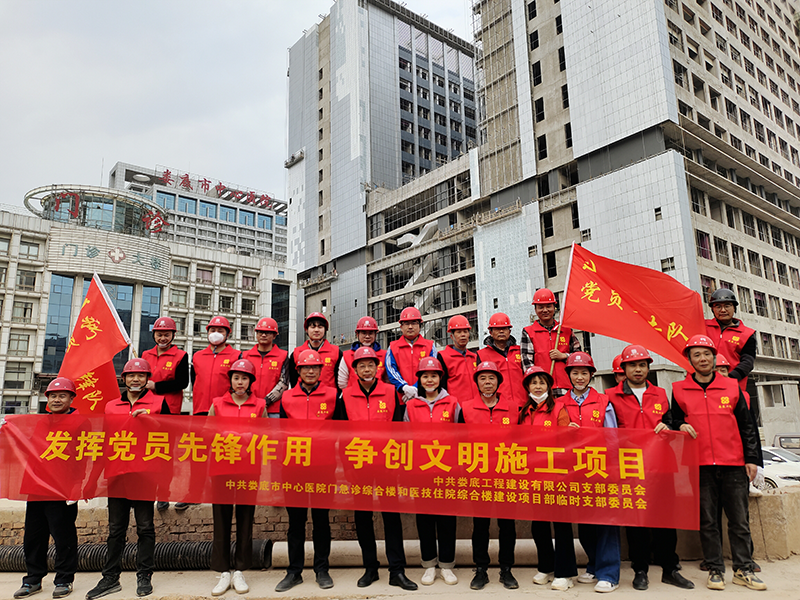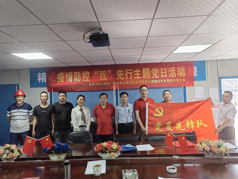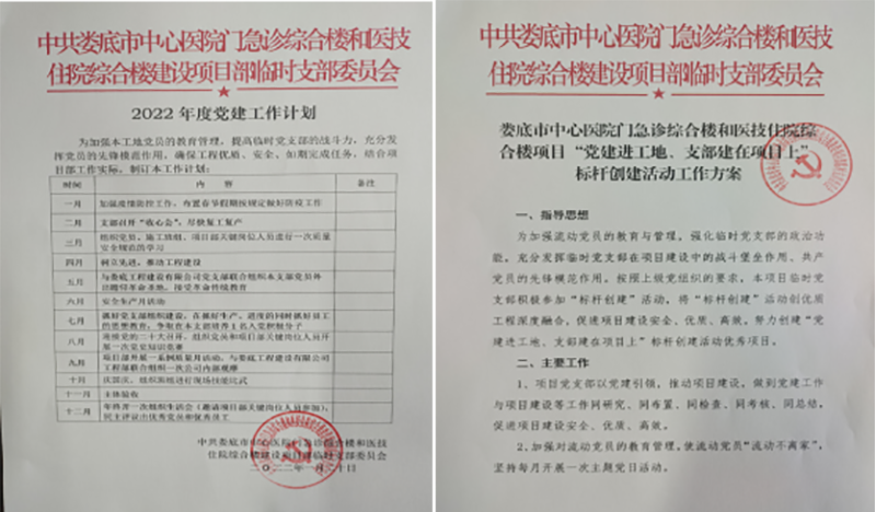 該項目地處婁底市最繁華街道的十字路口,又是婁底市最大的單體建筑公共項目。項目中標后,公司立即配備優秀骨干組建項目部班子,并成立了中共婁底市中心醫院門急診綜合樓和醫技住院綜合樓建設項目部臨時支部委員會,推舉項目經理姚春旭擔任臨時黨支部書記,并安排了黨建指導員。該支部目前有黨員8人。項目部設置了黨員活動室,文化走廊等,臨時黨支部“五化”建設達標。