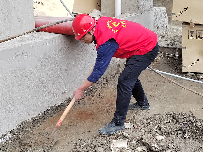 市中心醫院臨時黨支部書記姚春旭帶頭清掃淤泥