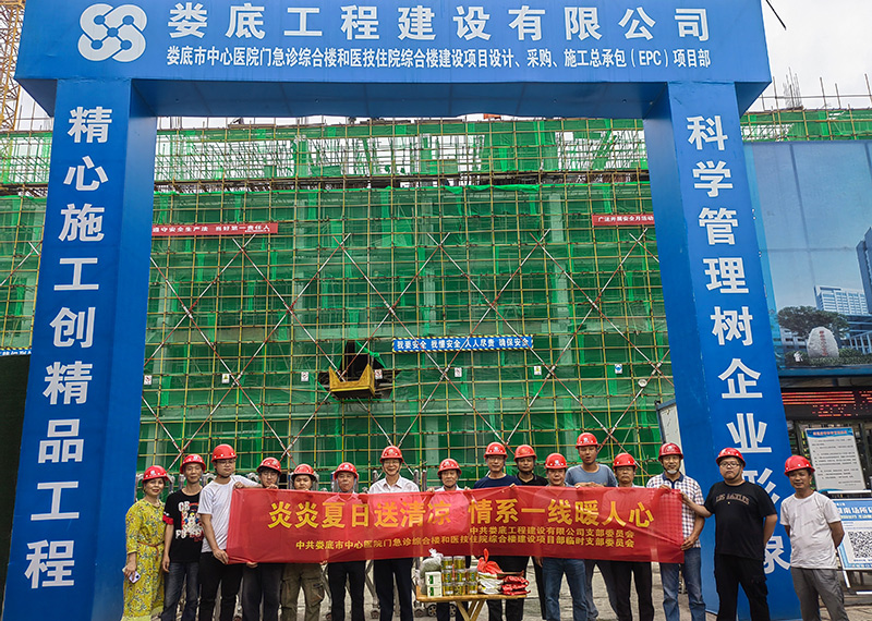6月17日,公司黨支部和婁底市中心醫院項目部臨時黨支部在婁底市中心醫院門急診綜合樓和醫技住院綜合樓建設項目部開展開展“炎炎夏日送清涼 情系一線暖人心”主題黨日活動。黨支部書記林有良、副總經理彭洪偉以普通黨員的身份參加了此次活動。