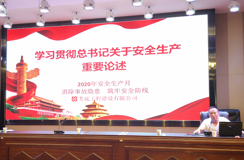 為貫徹《湖南省住房和城鄉建設廳關于開展2020年建筑施工“安全生產月”和“安全生產三湘行”活動的通知》(湘建建函[2020]69號)、《婁底市住房和城鄉建設局(市人民防空辦公室)安全生產委員會關于開展2020年建筑施工“安全生產月”活動的通知》(婁建安委發[2020]5號)要求,深入學習貫徹習近平總書記關于安全生產重要論述,牢固樹立安全發展理念,堅持“安全第一、預防為主、綜合治理”的安全總方針,進一步加強公司安全生產管理工作,營造安全生產良好氛圍,公司于2020年6月10日19點組織各部門和項目部人員在會議室舉行以“消除事故隱患,筑牢安全防線”為主題的“安全生產月”活動宣貫會。會議由總工程師李偉主持,公司總經理胡勁、副總經理彭洪偉、顏克靈出席了本次會議并講話。